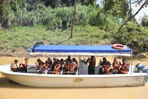 Pada sesi petang, rombongan pelajar tersebut telah dibawa untuk menyusuri Sungai Kinabatangan.