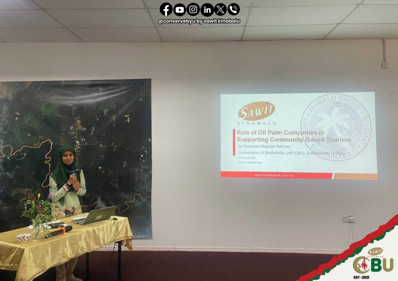 Pada 22 Ogos 2024 bertempat di KOPEL Kinabatangan, Eksekutif Konservasi CBU telah dijemput oleh Islamic Tourism Centre (ITC) satu agensi di bawah Kementerian Pelancongan, Seni dan Budaya Malaysia (MOTAC) sebagai salah satu penceramah bagi bengkel latihan untuk projek kajian di bawah Asia-Pacific Economic Cooperation (APEC) “Rebuilding Rural Tourism In APEC Economies By Utilizing Green Recovery Strategies” dengan topik bertajuk “The Role of Oil Palm Companies in Supporting Community-Based Tourism (CBT)”.